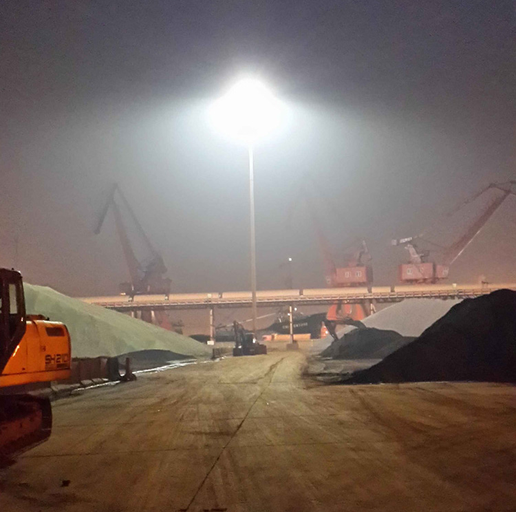 2012年元月,公司在山東日照港安裝了LED高桿照明實驗桿,經(jīng)過兩年零4個月的實際應(yīng)用,光衰小于5%。2014年4月,公司又成功在山東日照港完成首批高桿照明節(jié)能改造。此次改造的照明項目,桿高40米,桿間距150米左右,原采用國外某知名品牌高壓鈉燈平均功率1121W(含電源),改為LED燈具后平均功率338W(含電源),經(jīng)交通部船級社第三方測試確認(rèn),節(jié)能率達(dá)到69.89%;改造后平均照度46.14Lx,優(yōu)于原高壓鈉燈。