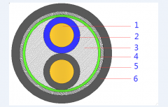 1-導體 2-絕緣 3-填充 4-繞包 5-內護層 6-鋼帶鎧裝 7-護套 1-導體 2-絕緣 3-填充層 4-繞包層 5-銅帶屏蔽 6-護套
